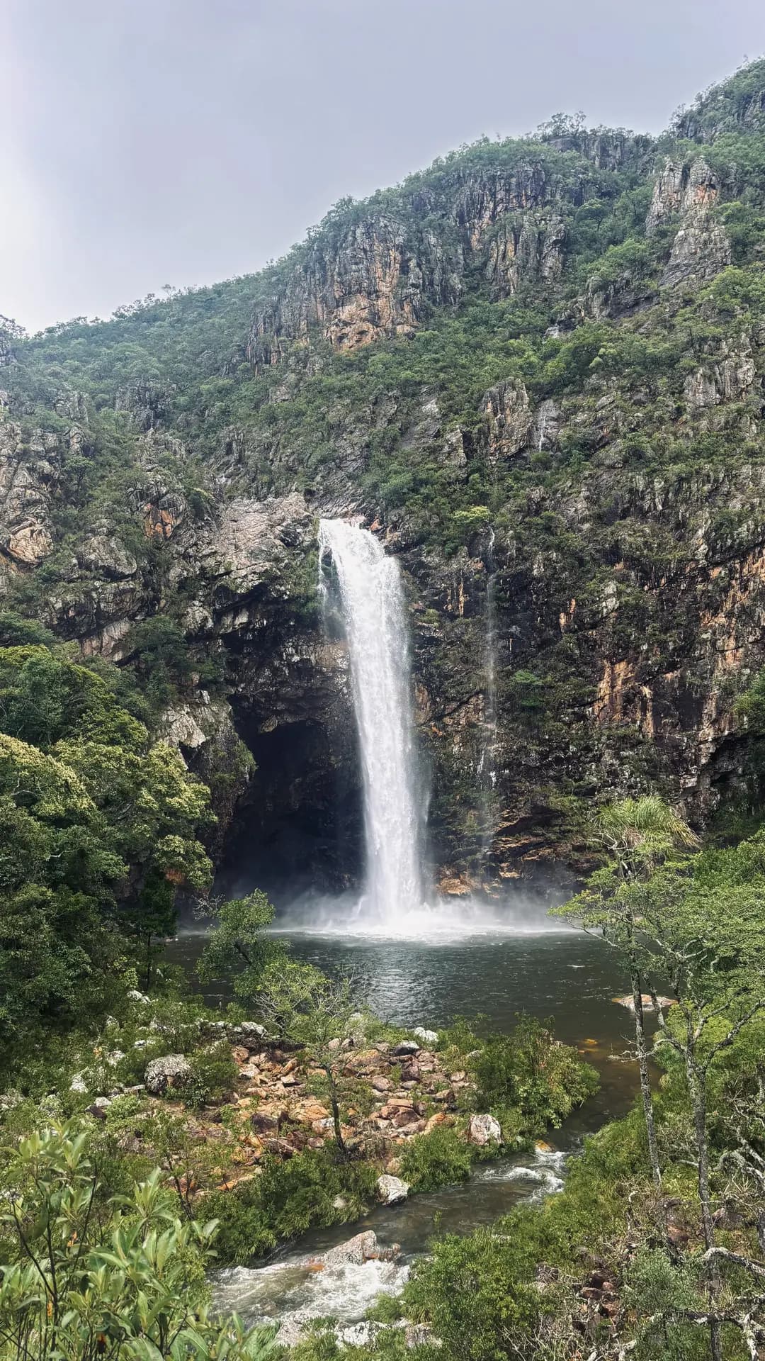 Trilha em mata fechada com paradas para banho em poços e quedas d’água, ideal para iniciantes e para quem quer curtir a natureza sem pressa.